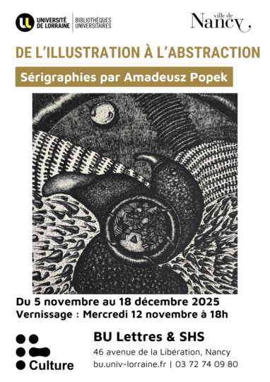 Lors de cette exposition, Amadeusz Popek présentera plusieurs tableaux de sérigraphies aux motifs graphiques en noir et blanc, et il sera présent en France pour présenter son exposition lors du vernissage le 12 novembre prochain à 18h à la BU Lettres & SHS.